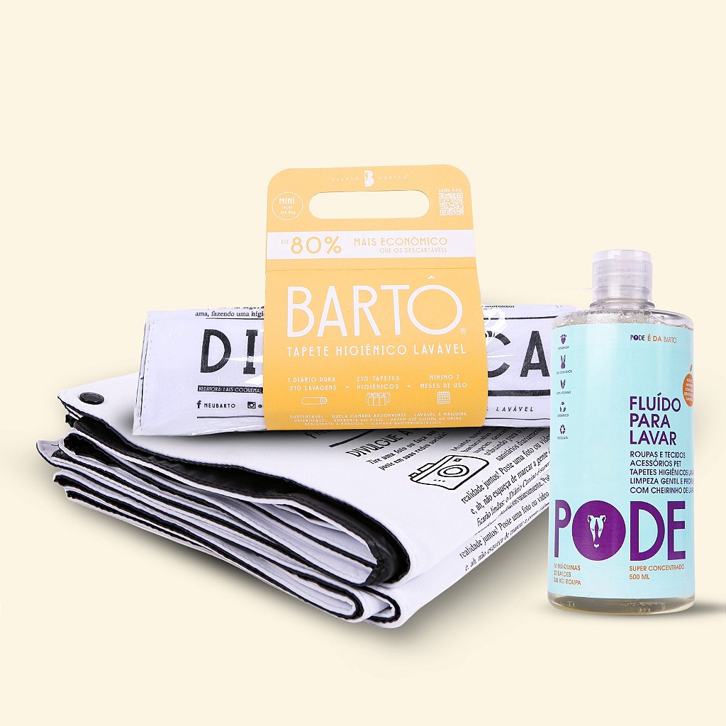 Para facilitar ainda mais o dia a dia, o kit inclui o Fluido Para Lavar PODE, que substitui sabão, amaciante e desinfetante, garantindo uma limpeza eficaz, segura e natural — tanto para os tapetes quanto para o pet e a casa.